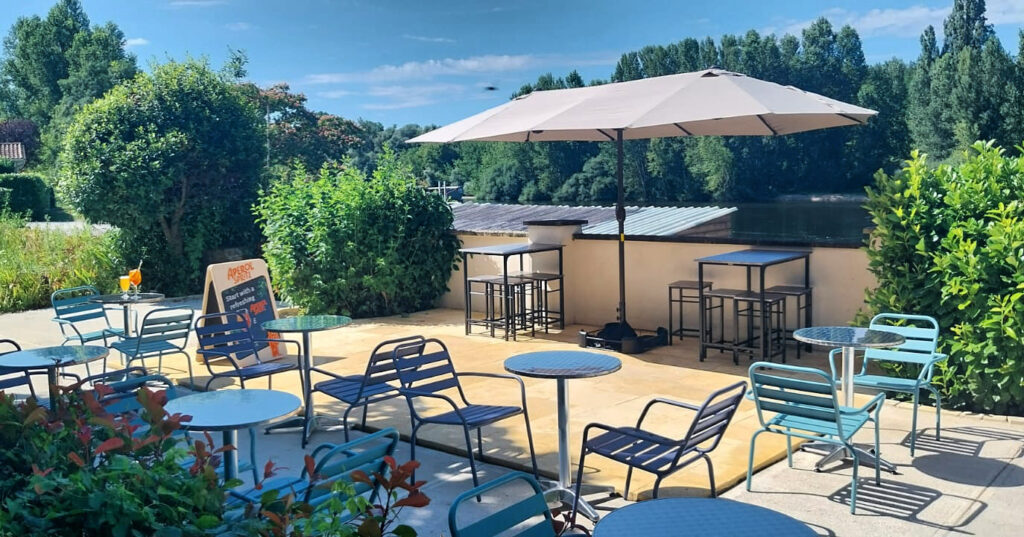 Whether your group dine inside or outside, the terrace is a perfect setting for a pre event, birthday toast or into the night dance floor … all beautifully lit, with continued views of the river Dordogne.