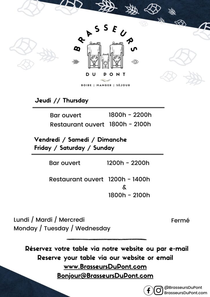 Vous avez faim ? Vous avez soif ? Réservez votre table avec nous. Nous vous confirmerons par e-mail (n’oubliez pas d’ajouter [email protected] à votre liste de contacts et vérifiez vos “spams” pour voir si nous vous répondons).